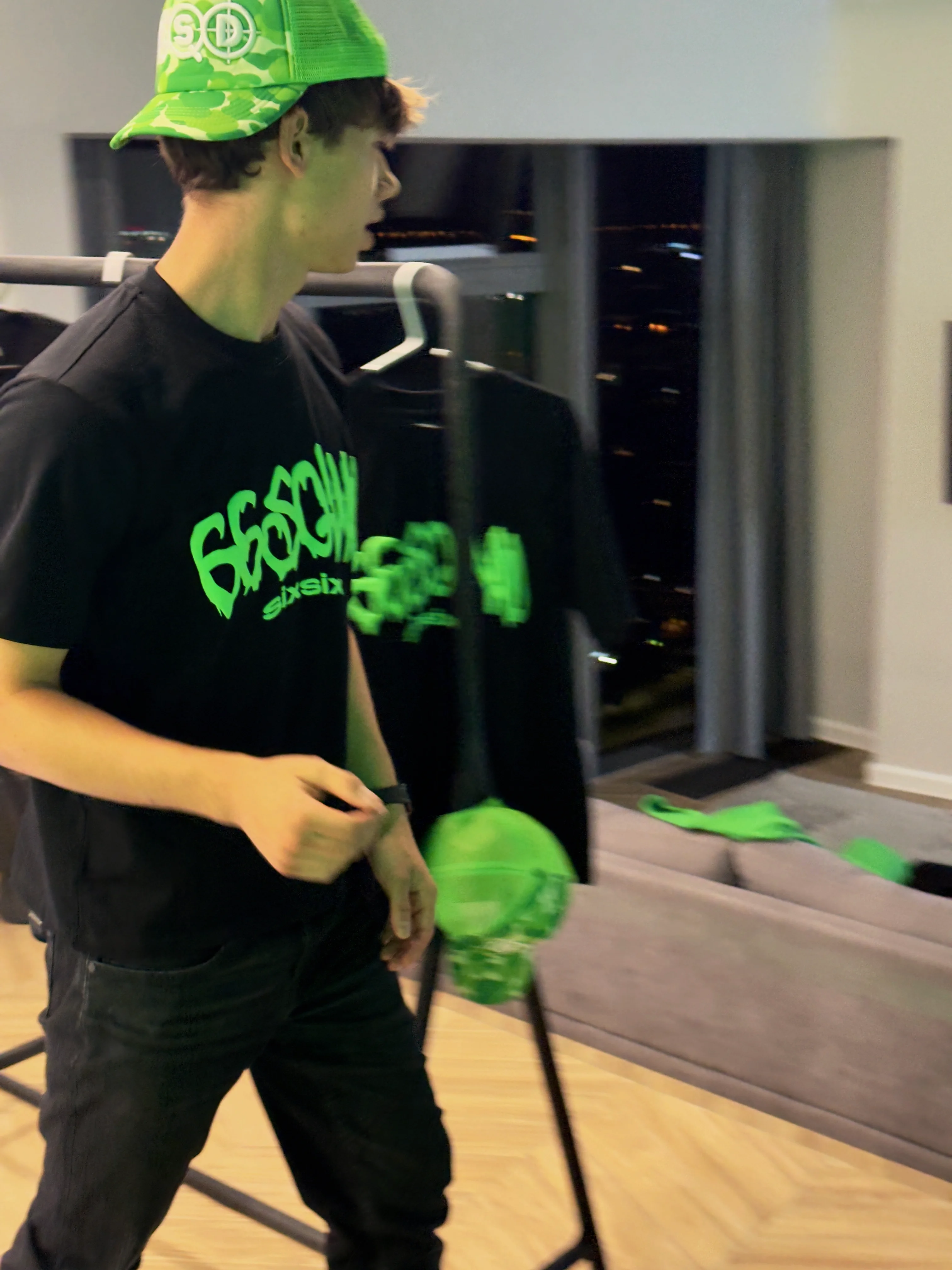 z zielonym wypukłym nadrukiem 3D. Ten zielony kolor tak się rzuca w oczy, super to wygląda.