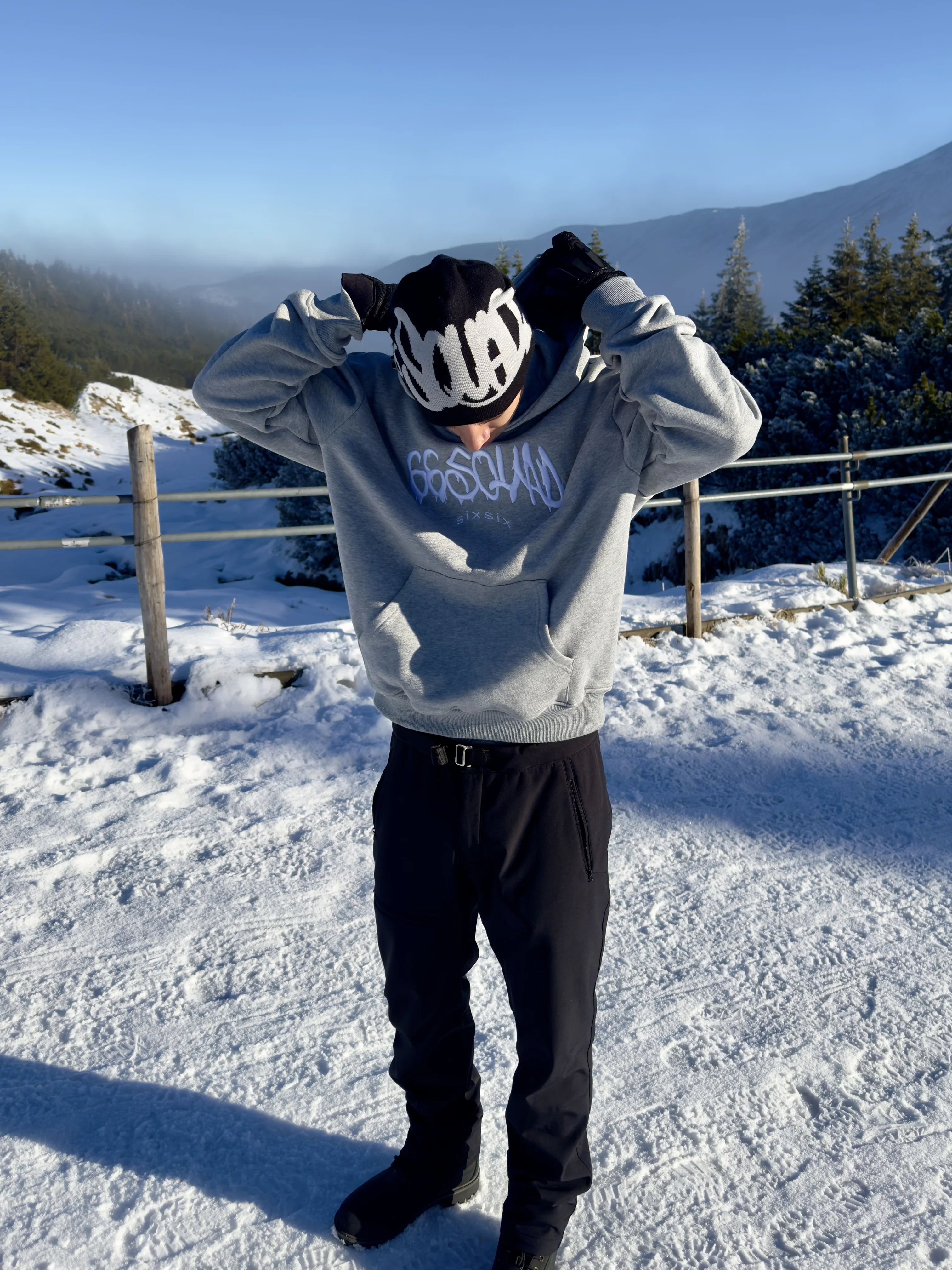 Zestaw zawiera: zimowa czapka z szarym nadrukiem