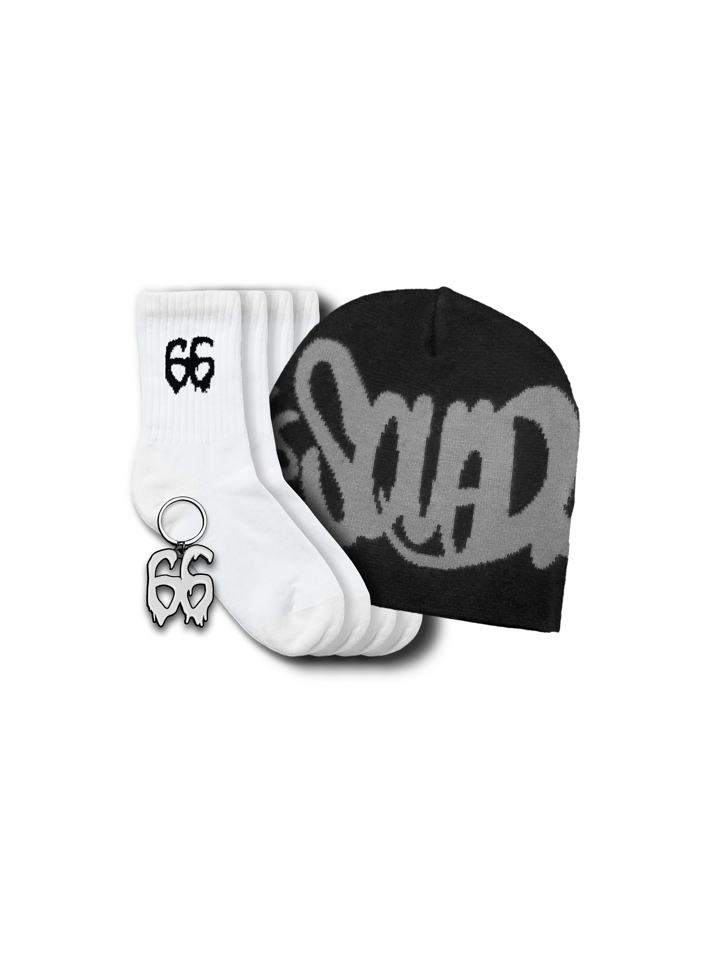 , 2 pary białych skarpetek z logo 66 oraz metalowy brelok. Całkiem opłacalne.